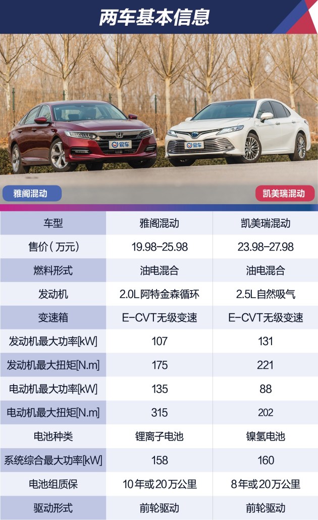 雅阁混动对比凯美瑞混动版 天生宿敌/入门差价4万元