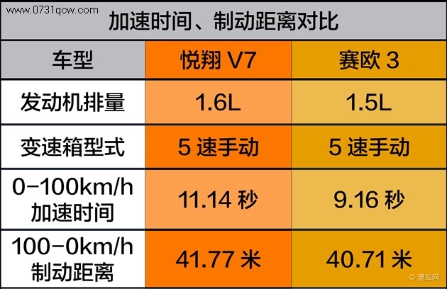 动力:悦翔V7参数占优 赛欧3加速/制动成绩更好