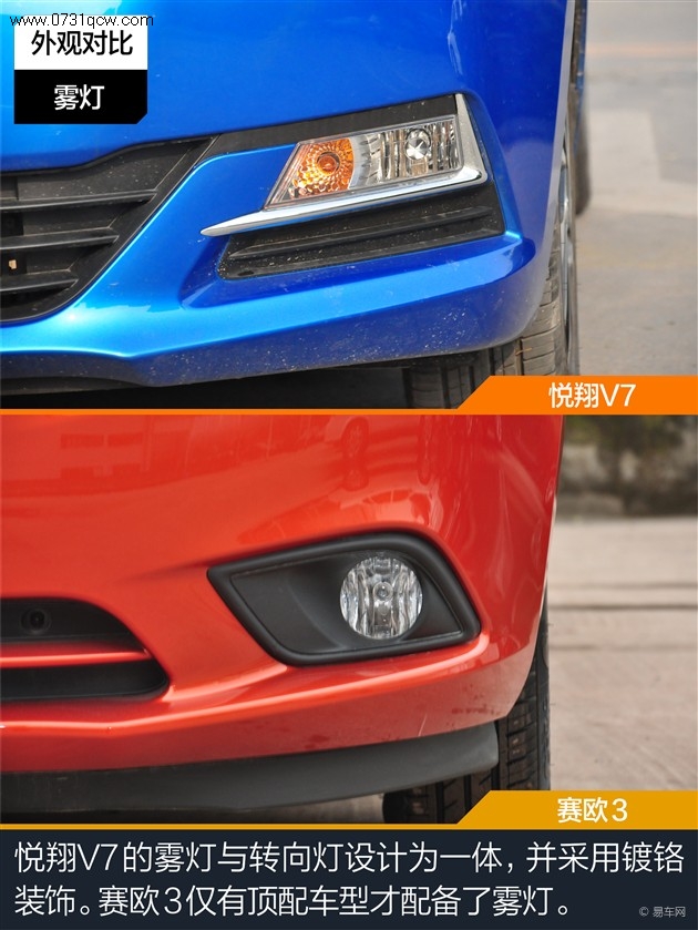 小结:悦翔V7和赛欧3在外观风格各成一派,悦翔V7在灯光和轮胎等外观配置上更有优势。