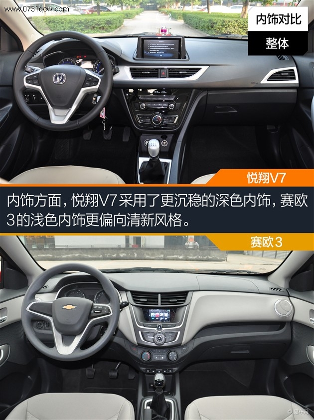 内饰:不同配色风格不同 赛欧3设计更巧妙 悦翔V7配置更高