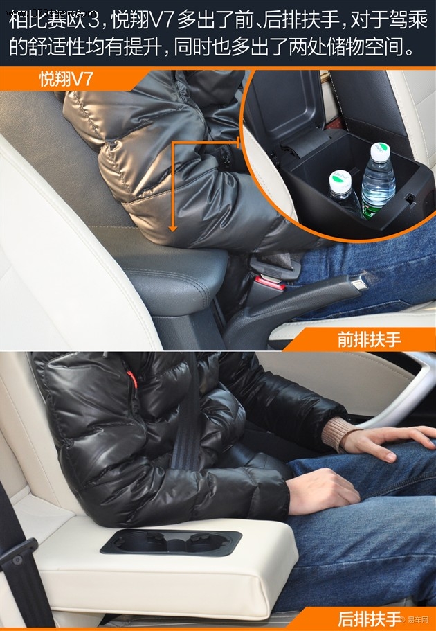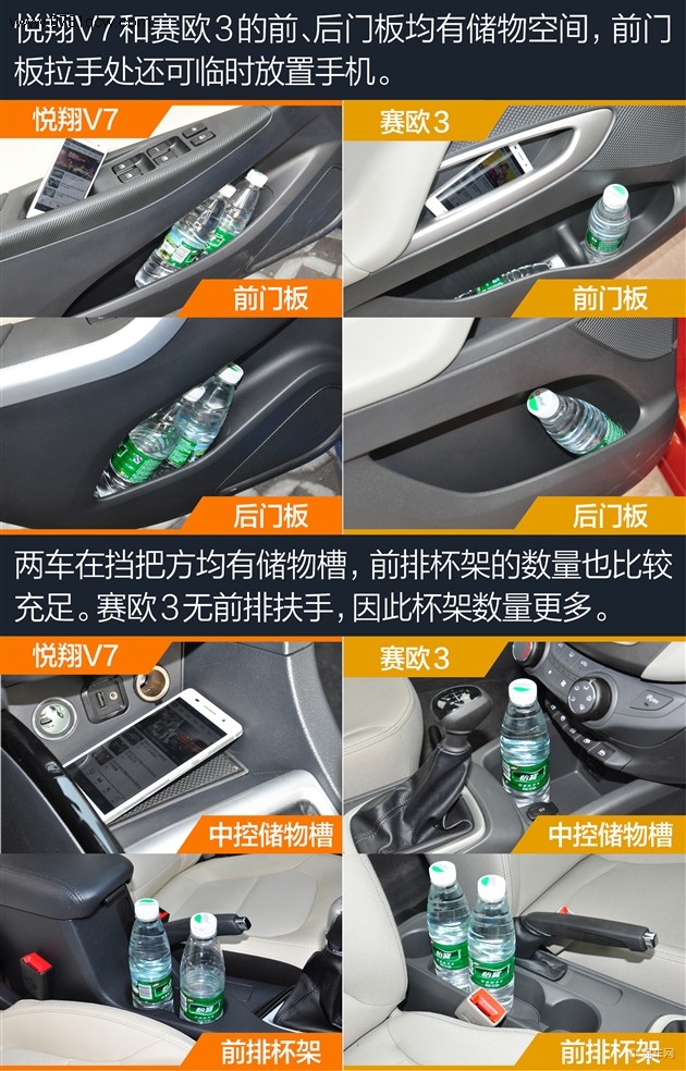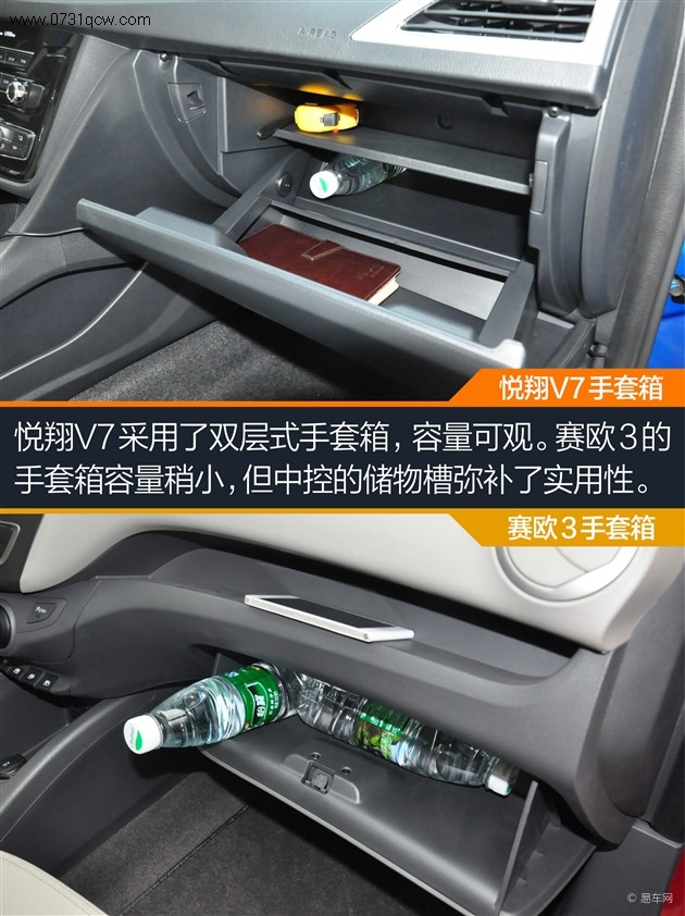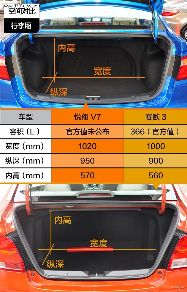 小结:虽然悦翔V7的外观尺寸比赛欧3大上一圈,但实际的乘坐空间并没有数据上的差距那么大,两车都能满足家庭用车的需求。悦翔V7在前、后排均拥有中央扶手,在乘坐舒适度上更有优势。另外,两车的后排都不能放倒,行李厢空间的拓展性不足。