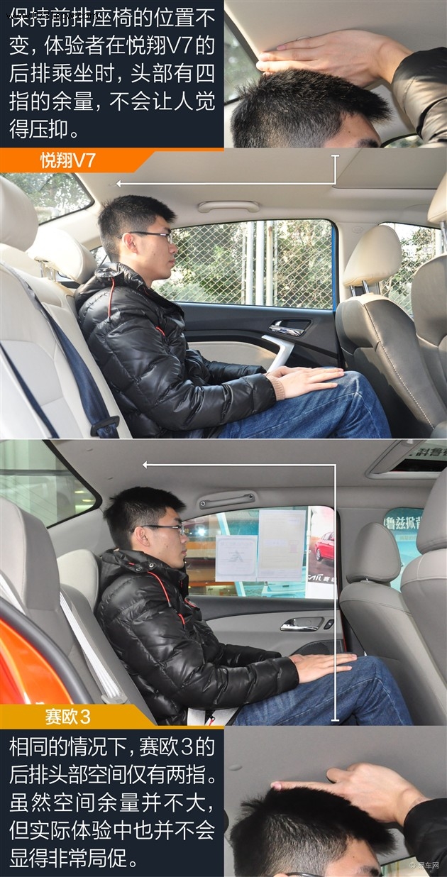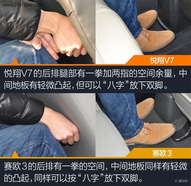 空间:两车均可满足日常使用需求 悦翔V7后排略占优势