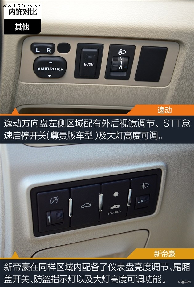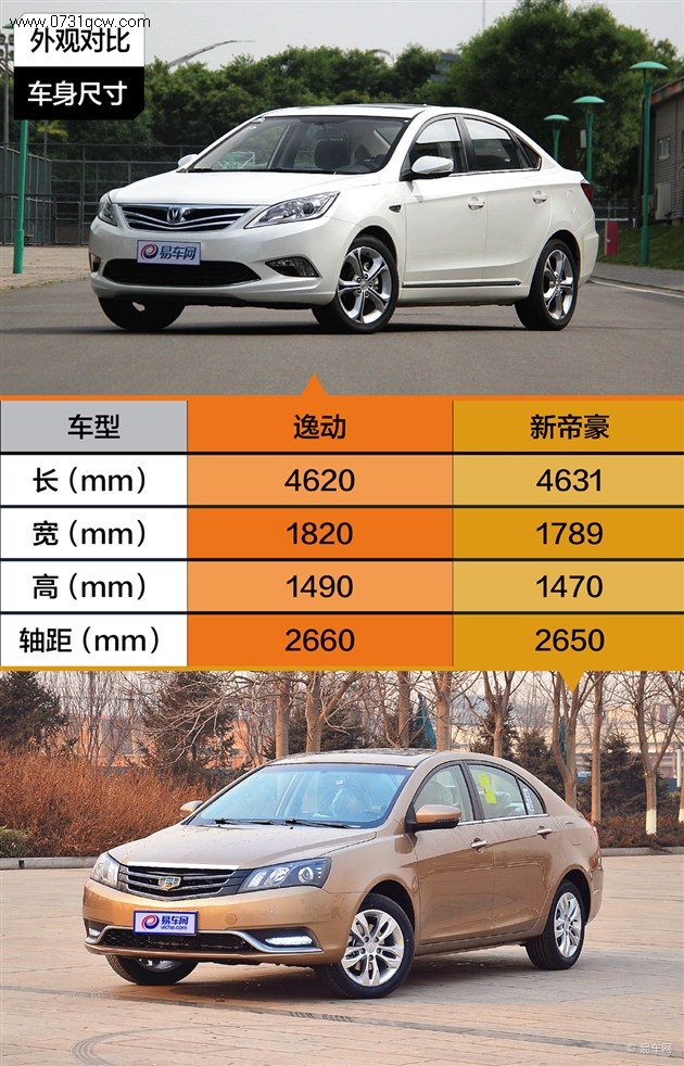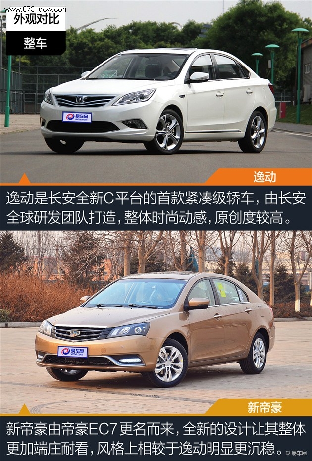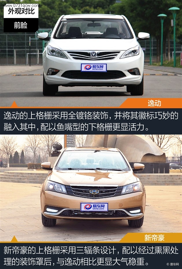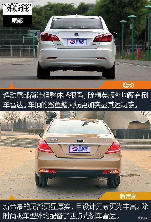 外观小结:两车同为定位家用轿车,但在设计思路上各不相同,逸动由长安汽车全球研发团队打造,样式上时尚不失动感。新帝豪全新的设计让其更加端庄耐看。外部配置方面,两车出入不大,新帝豪因为多了日间行车灯以及自动头灯稍占上风,而实用性较强的前雾灯则是它所不具备的。