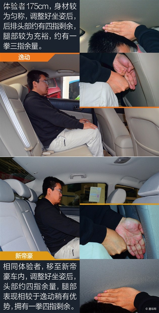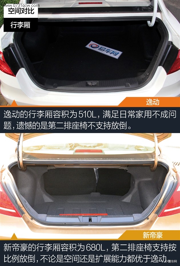 空间小结:单从车身尺寸来看,逸动除了长度外其他方面的数据与新帝豪相比都小有优势。但真正的乘坐体验方面,两车差距不大。新帝豪因其第二排座椅支持按比例放倒,因此在空间拓展方面要明显优于逸动,而常规下的行李厢空间新帝豪也完胜逸动。从储物空间的图片展示来看,两车做的都还不错,完全能够满足日常家用需求。