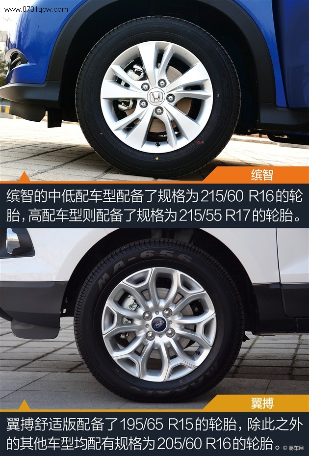 从上述的对比表格中我们不难发现,尽管两车同属定位小型SUV,但售价方面差异颇大。动力方面,两车均配有两款发动机可选,翼搏因配有时下较为流行的涡轮增压发动机,可能对年轻消费者而言更具吸引力。传动方面,缤智低配车型所配备的6挡手动更具竞争力,自动挡车型中,翼搏所搭载的6挡双离合在技术上更加先进。
