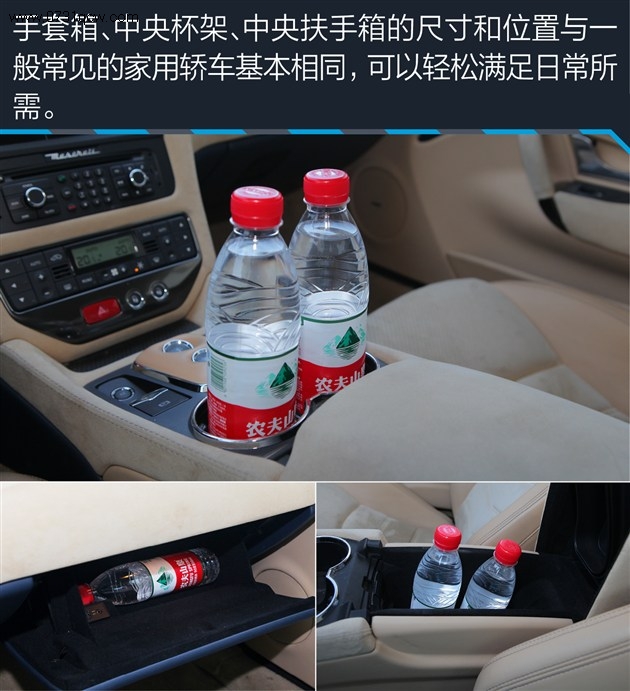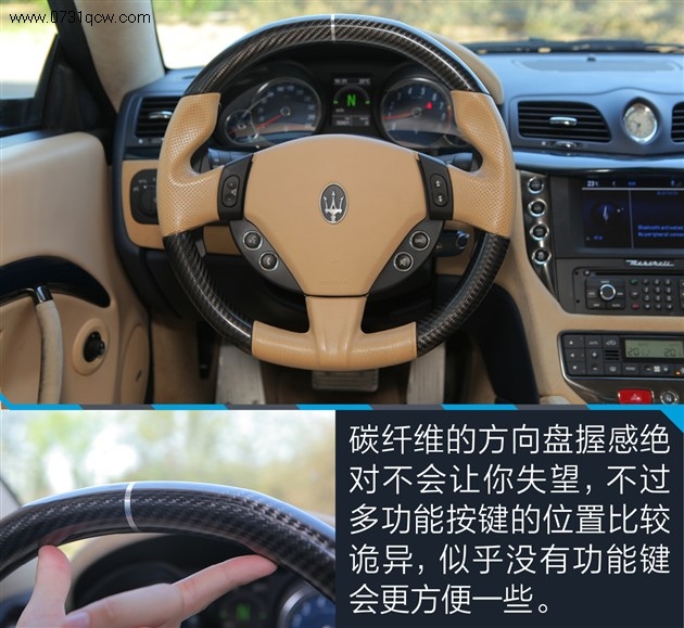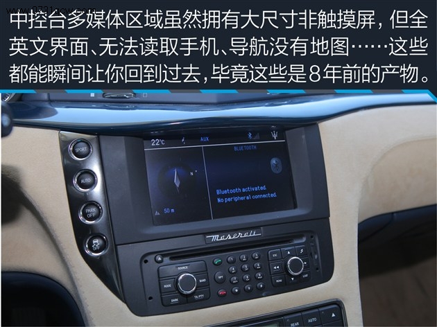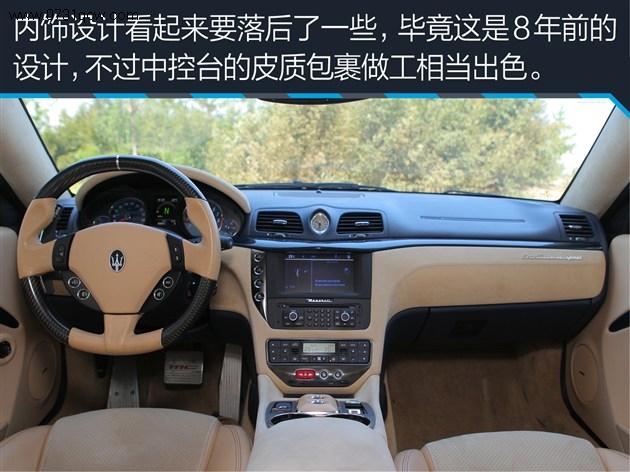 内饰小结:玛莎拉蒂GT方向盘的握感非常棒,造型夸张的换挡拨片以及金属运动脚踏板可以让渴望激情驾驶的血液沸腾起来,覆盖高级皮革的内饰样子虽然看上去跟时尚有些脱节,但并不会影响到这辆车的魅力。