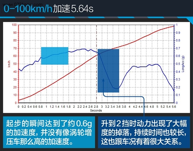 由于此次试驾的玛莎拉蒂GT Sport F1车况并不是很好,本次的加速制动成绩仅为参考。在起步时GT Sport F1有着很强的加速表现,猛烈的推背感也瞬间的踊跃出来,这个种感觉完全不输于很多大马力增压跑车。从数据上看起步的瞬间几乎达到了0.7g的加速度,这几乎达到了很多超跑的水准,随后加速度降至0.5g左右,最终加速时间为5.6秒。