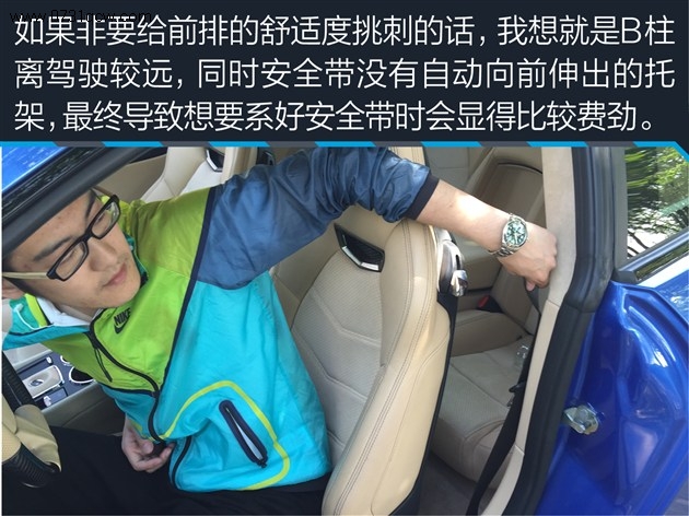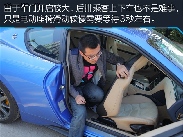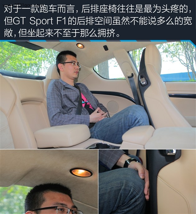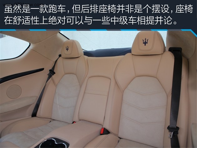 虽然玛莎拉蒂GT整车长度只有4881mm,但轴距却达到了2942mm,缩短的前后悬架将四个车轮放置在远端的设计,在经济型轿车上能够获得更大的空间。在实际的乘坐体验上即便是身高在185cm的男士坐在前排右头部空间也有着很好的表现。当然作为一款跑车后排的空间往往才是很多人所关注的,玛莎拉蒂GT并没有让我们失望,合理的车身设计使得后排空间并不显得非常的拥挤,完全可以满足大多数人群。