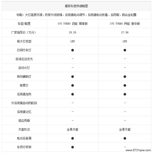 主推荐:370 TURBO 四驱 尊享版(厂家指导价:29.28万元)
