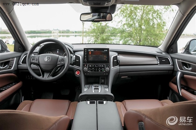 冠道的内饰采用了对称式的排布方式,其颇具讴歌风格的方向盘、大尺寸的悬浮式中控屏幕以及按键式换挡机构很有特点,质感出色的木纹饰板以及做工优秀的内饰营造出了不错的豪华感。