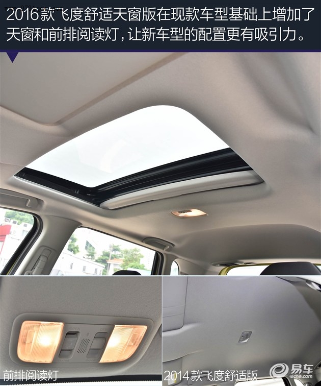 内消费者大都看重车辆是否带有天窗,现款飞度仅在精英版和领先版上配置了。其实我当初也是冲着有天窗才选择精英版的,原因是飞度低配车型竟然连前后排独立的阅读灯(车内照明灯)都没有,太不实用了。这次改款舒适天窗版和时尚天窗版都设置了独立的前后排阅读灯,预算有限的消费者选择低配飞度的时候再也不用纠结了。