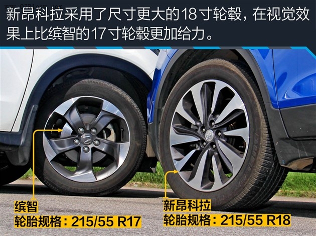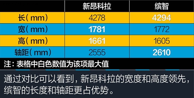 其中最大的不同体现在高度和轴距参数上,新昂科拉的高度比缤智足足多出了56mm,而缤智的轴距则比新昂科拉多出了55mm,这两项参数上的差距非常明显。