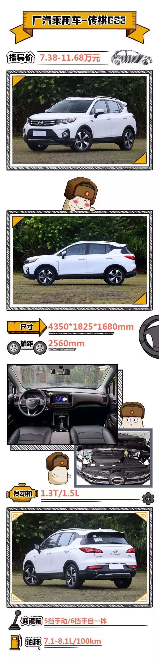 传祺GS3有着高度原创且个性化的外观设计,光影雕塑2.0的设计语言以及凌云翼式近期格栅足以让它男女通吃。内饰设计充满了“跑道圆”的设计元素,搭配悬浮式的立体设计,使得整体布局简单明了且不失潮流美观。